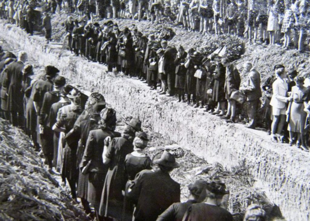 Mehr als 400 Menschen sind dabei ums Leben gekommen, unter ihnen Dutzende Lehrlinge von Messerschmitt. „Ich finde es wichtig, an diesen für Regensburg so schlimmen Tag und die vielen Opfer immer wieder zu erinnern. Denn das Gedenken ist auch Mahnung - für Frieden und Verständigung zwischen den Staaten“, so Bürgermeisterin Astrid Freudenstein. Das Bild zeigt die Massenbestattung wenige Tage nach dem Angriff am Oberen Katholischen Friedhof. (Quelle: Volksbund Deutsche Kriegsgräberfürsorge)