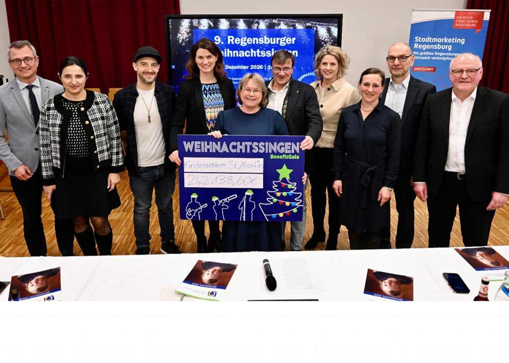 Bürgermeisterin Astrid Freudenstein war am Abend des Regensburger Weihnachtssingens am Spendentelefon gesessen. Alle waren bei der Bekanntgabe der endgültigen Spenden-Höhe beeindruckt von der Großherzigkeit der Menschen in der Region. Und alle freuen sich bereits auf das Weihnachtssingen 2026.